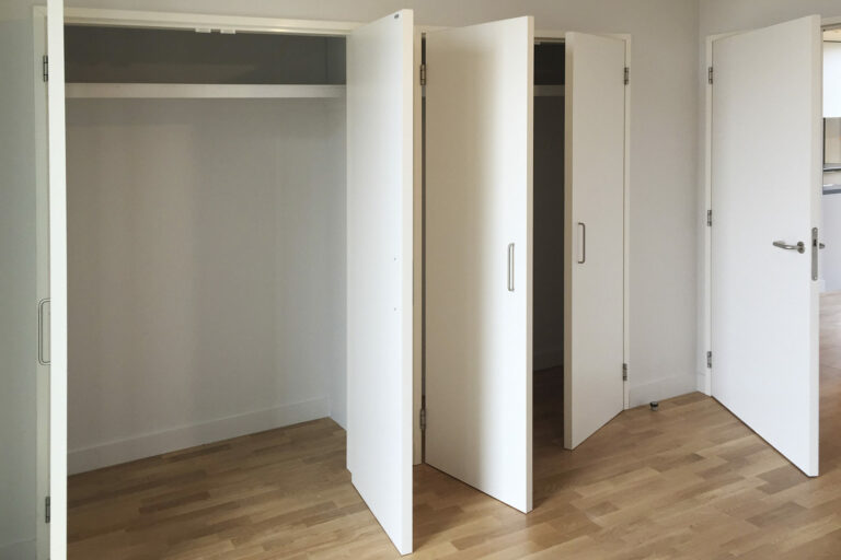 Theuma supplied 6,300 doors for this construction project. For the bedroom doors, we opted for grey laminate PAS24 doors. The remaining doors in the building were glossy EBC lacquer doors with MonoPlus frames. All the apartments were fitted with soundproof floors and heating and had to meet stringent specifications. The doors we provided were therefore fire-, smoke- and burglar-resistant.